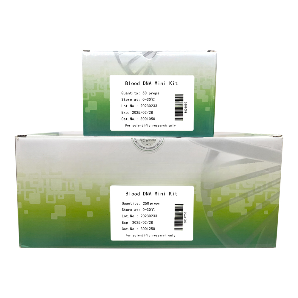 This product adopts the national invention patent technology, which can quickly separate and purify genomic DNA from 200-400 µl fresh or frozen anticoagulated whole blood of human or animal within 15-20 minutes. This product does not use proteinase K to digest protein. After the whole blood is dissolved in Buffer L1, the hemoglobin is removed by precipitation in Buffer L2. The genomic DNA in the supernatant obtained by centrifugation can be bound to the purification column, and after washing with Buffer WA and Buffer WB to remove the remaining protein and PCR inhibitors on the membrane, the genomic DNA is eluted with Buffer TE, and can be used immediately for various molecular biology experiments including clinical in vitro detection.